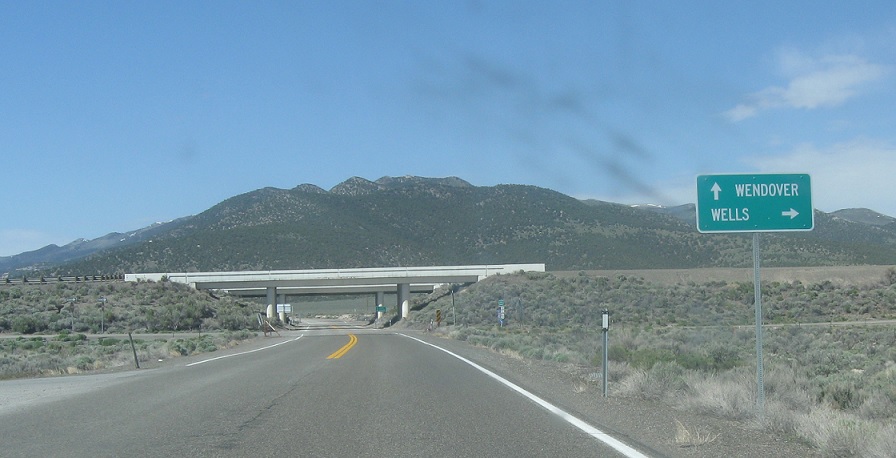 A few miles later, we’ll approach I-80 and US-93 Alternate. Follow 80 west/93 alt north to Wells and 80 east/93 alt south towards Wendover, Utah.