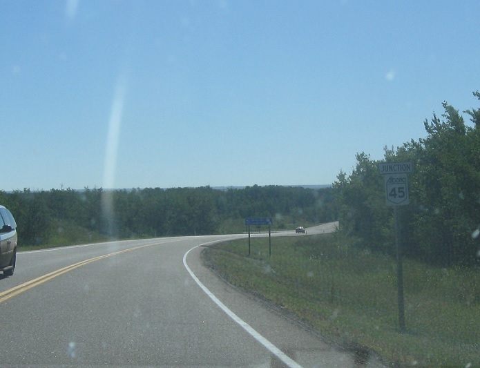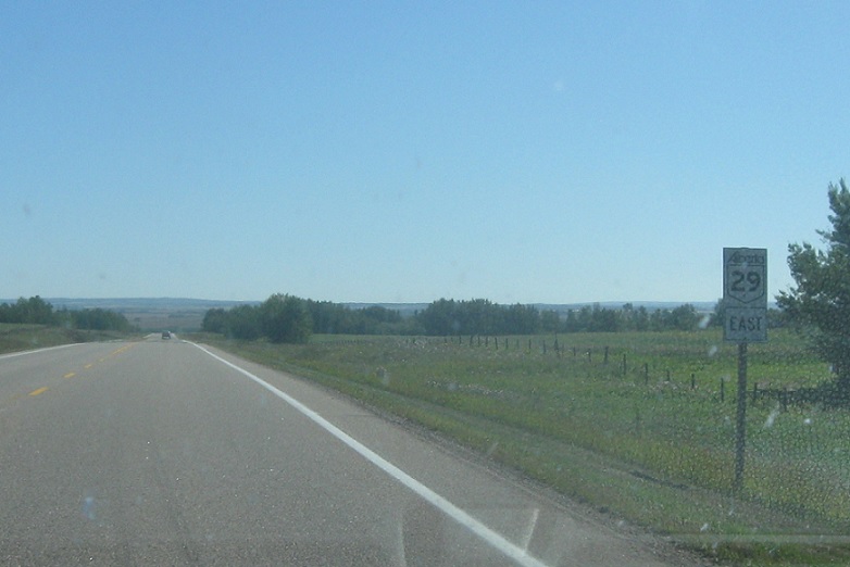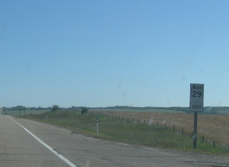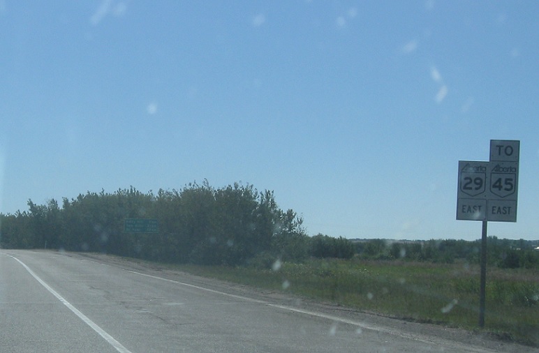A couple kilometers later, the two routes will split. Turn left for 29 east towards Brosseau. Stay straight for 45 east towards Two Hills.