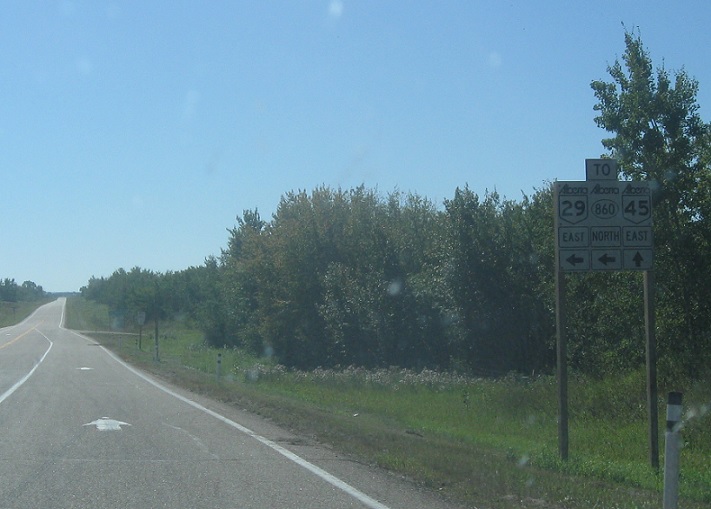 Turn left for 29 east towards AB-860. Stay straight for AB-45 east.