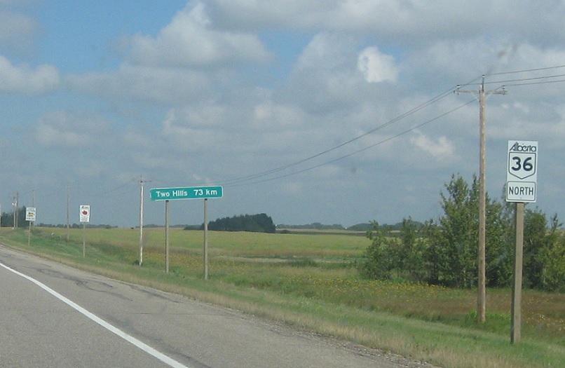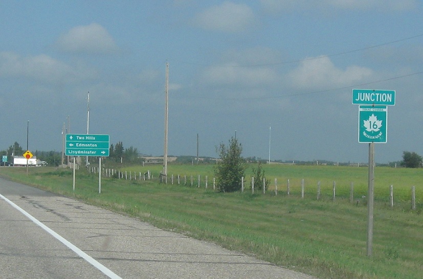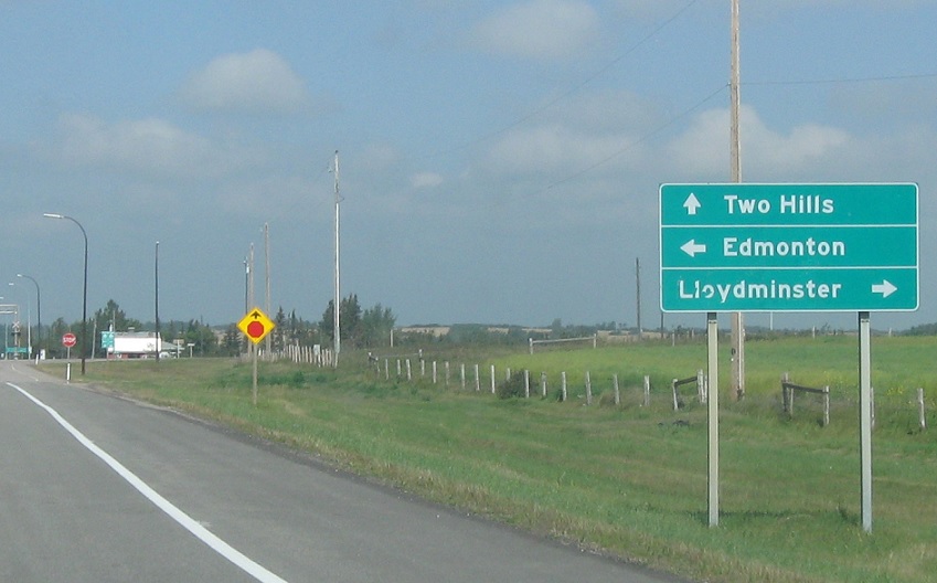 Follow 36 north to Two Hills, 16 east to Lloydminster, and 16 west to Edmonton.