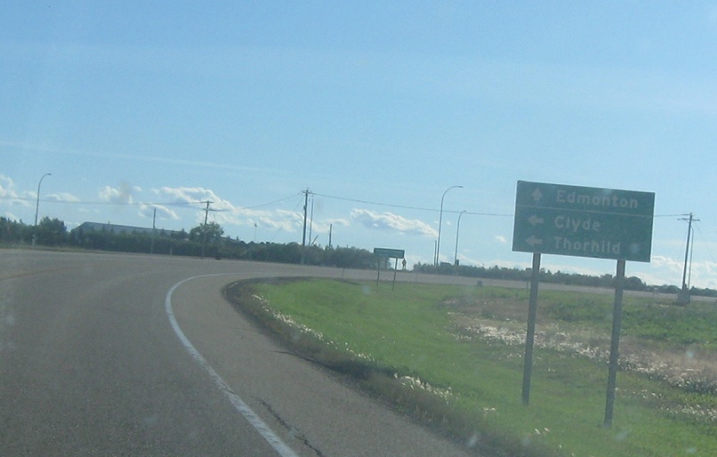 Follow 2 south/18 west toward Edmonton. Take 18 east to Thorhild via Clyde.