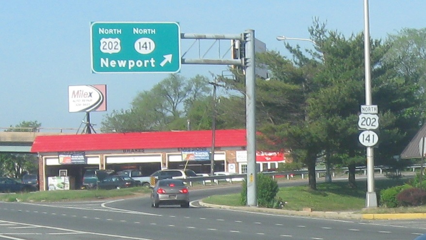N to I-495/US-13 Bus, S to US-202/DE 141