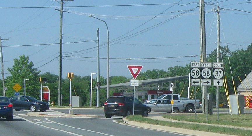 Stay straight for DE 37 south. Turn right for DE 58 west and left for DE 58 east.