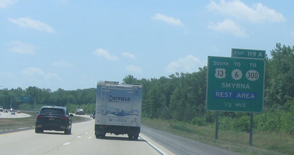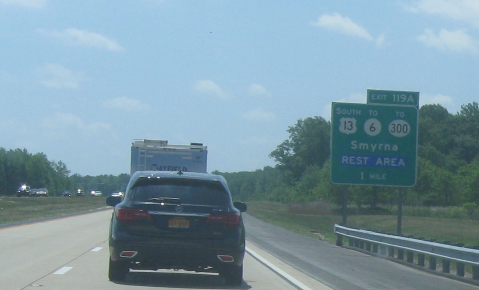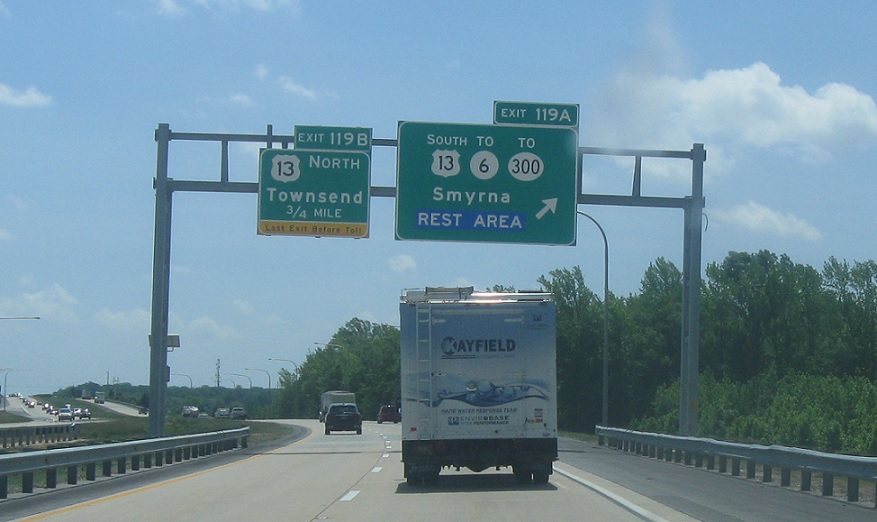 A few miles later, we’ll cross US-13 with interchange. 13 connects to DE 6 and DE 300, which cross but don’t interchange with DE 1.