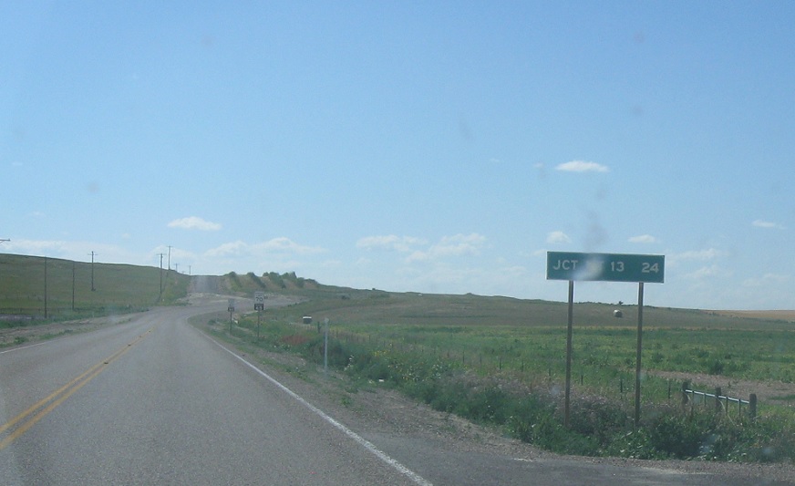 A few miles later, we’ll enter McCone County and approach MT-13. Turn left for 13 south and right for 13 north.