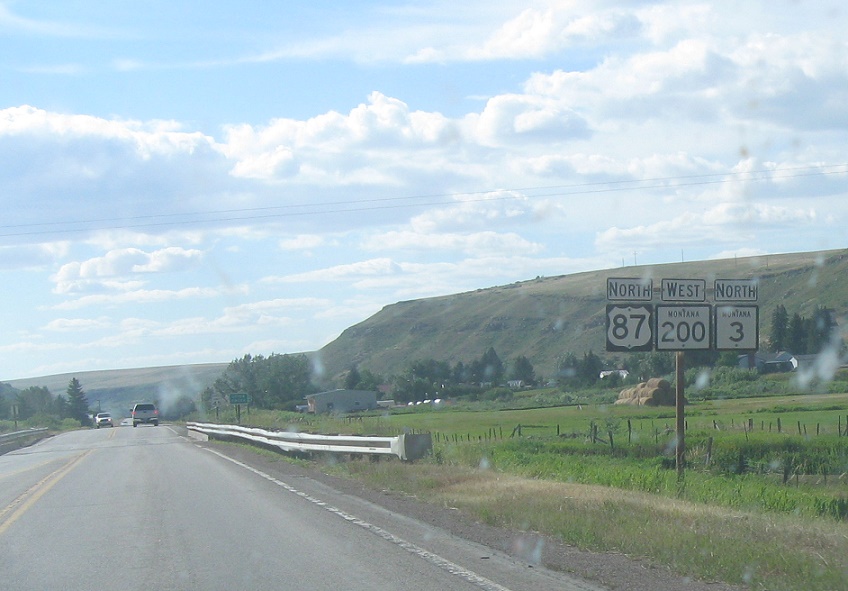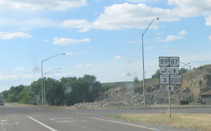 Turn left for US-89 south. 89 north joins 87/3/200 to Great Falls, and will stay concurrent with MT-200 all the way to Vaughn.