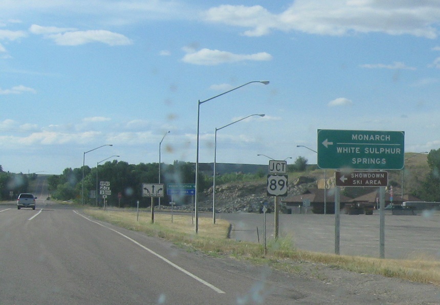 A few miles later, we’ll cross into Cascade County and approach US-89. Follow 89 south to Monarch and WSS. 89 north joins the concurrency to Great Falls.
