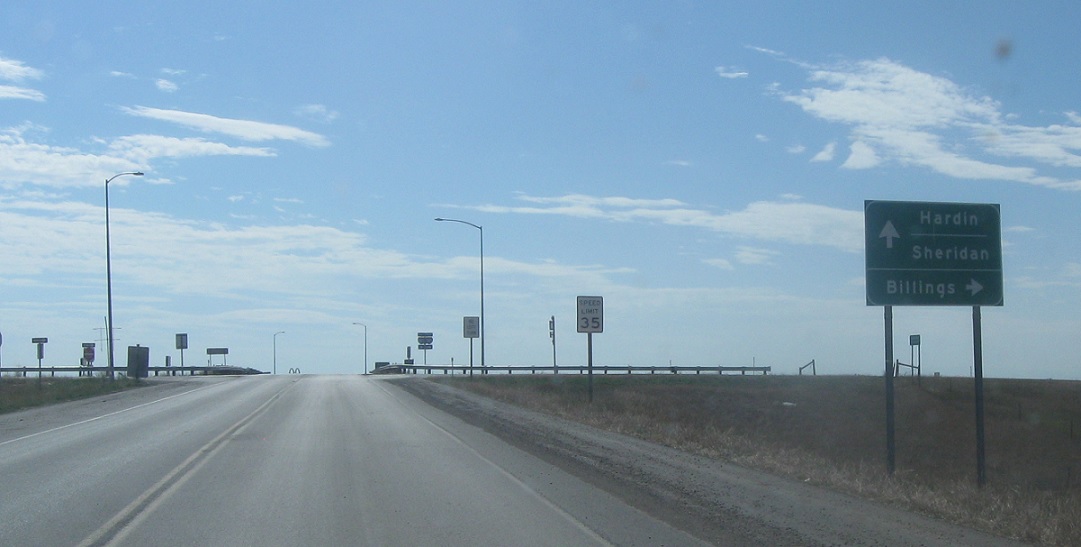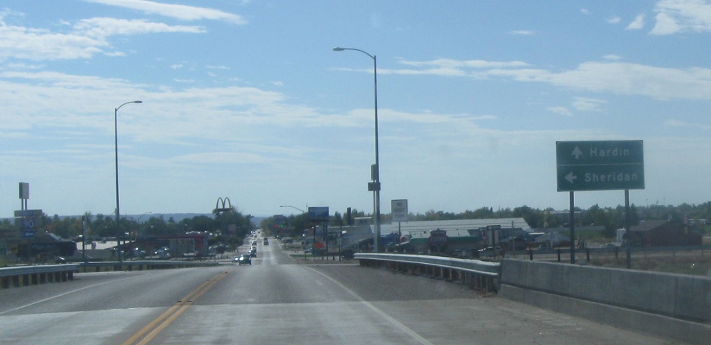 Turn left for I-90 east towards Sheridan, Wyo. I-90 Business begins here, and will run concurrent with Montana 47 into Hardin.
