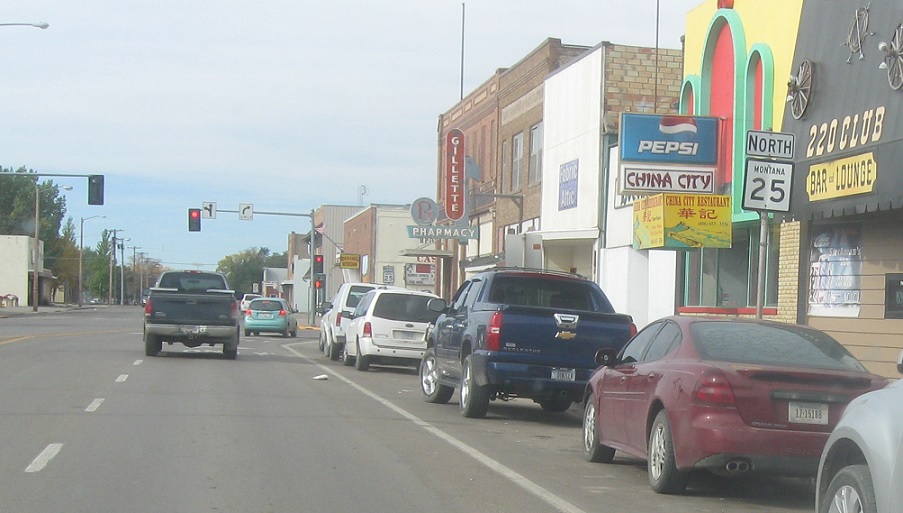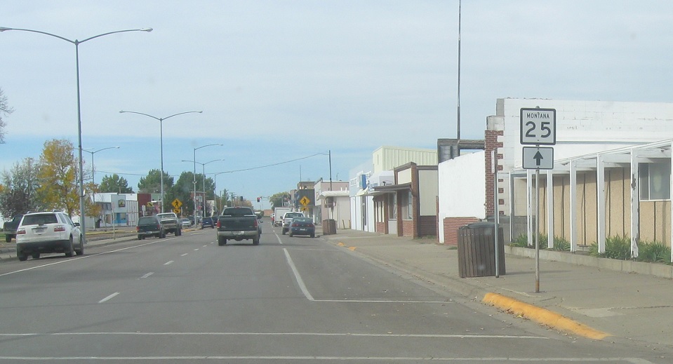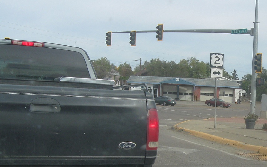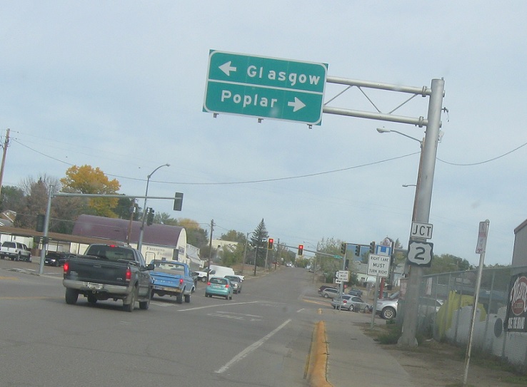 Reassurance shield as we enter downtown Wolf Point. I think there’s supposed to be an arrow under the shield, since the highway turns right at the light.