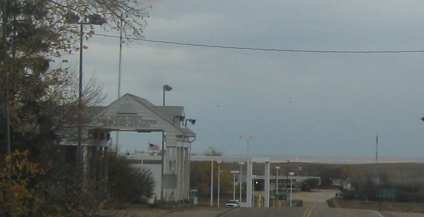 Montana 16 ends in the distance as we approach Canada. The old border station is still there, to the left, with the new station visible in the distance. Montana 16 continues as Saskatchewan 6, which heads to Regina.