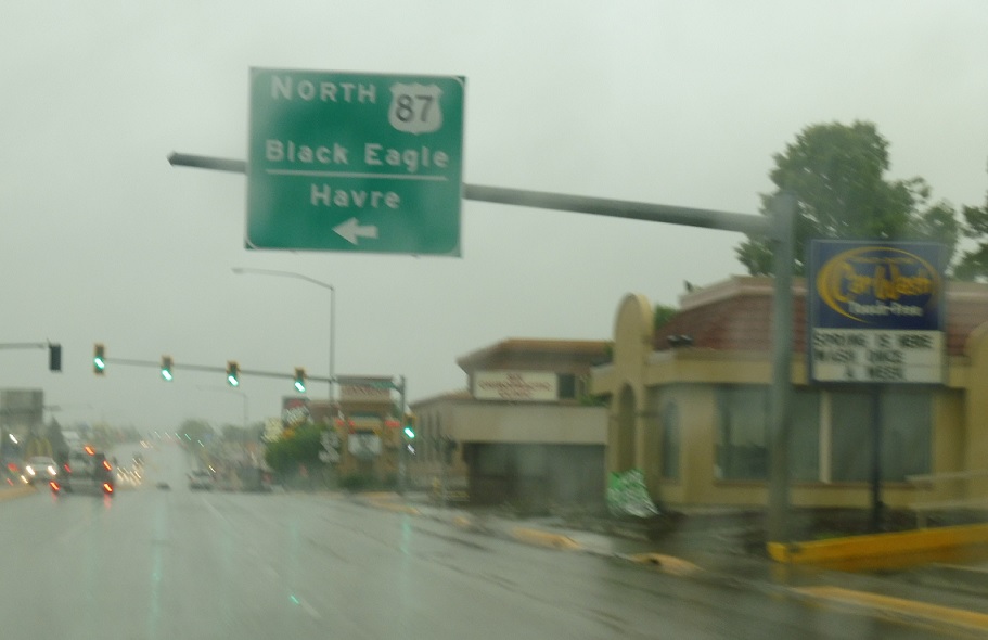 Turn left for US-87 north towards Black Eagle. US-87 South joins US-89/MT-3/MT-200, running concurrent with MT-200 all the way to Grass Range.