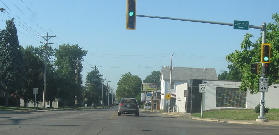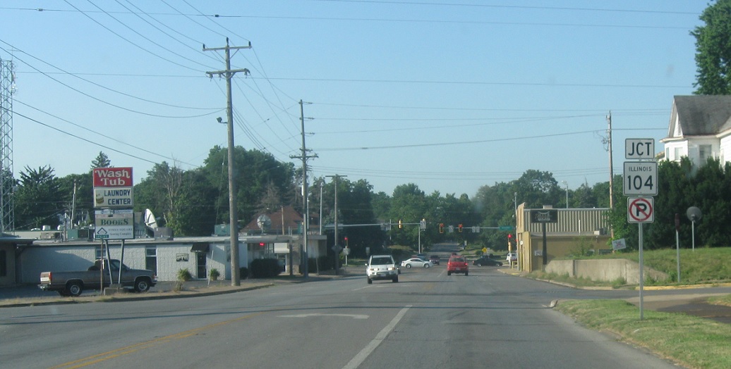 At the light, we’ll approach Route 104. Stay straight for 96 south. Turn right or left for 104.