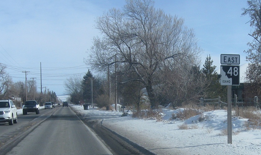 As we enter Ririe, turn right for 26 Business west and stay straight for 26 Business east. SH-48 ends here.