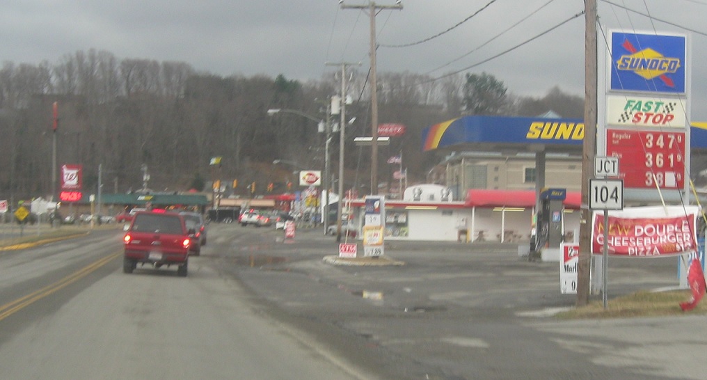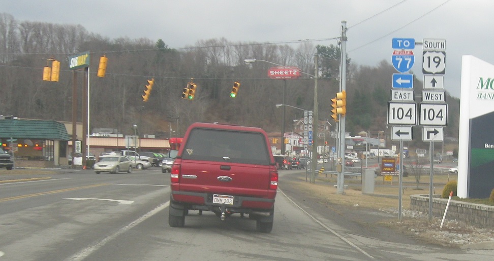 Turn left for 104 east to I-77. 104 west joins US-19 south for one block before turning right.