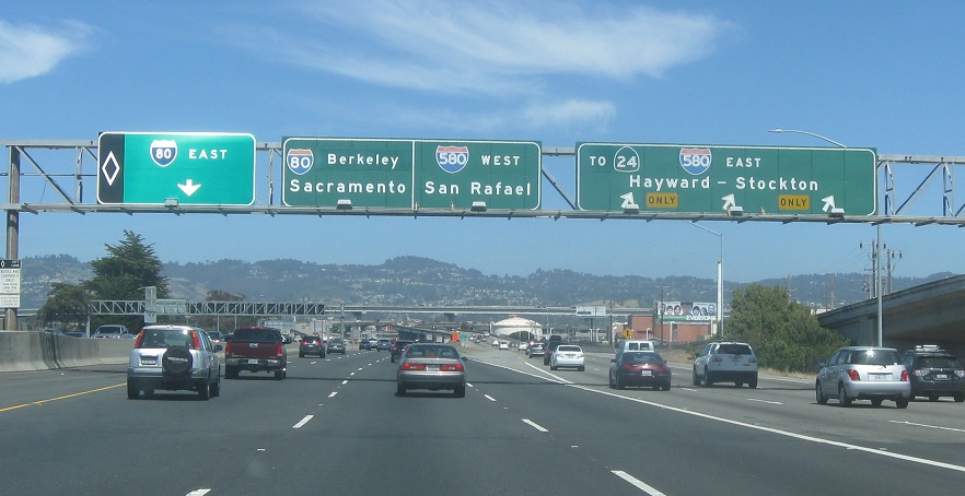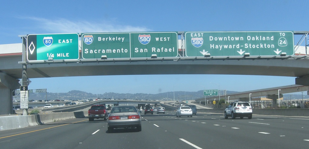 Exit for I-580 east. 580 west joins 80 east for a few miles in a wrong-way concurrency.