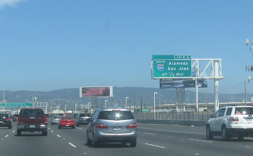 Exit for I-880 south. We’ll approach the I-580 to SR 24 east ramp here in a moment, as I-580 west joins.