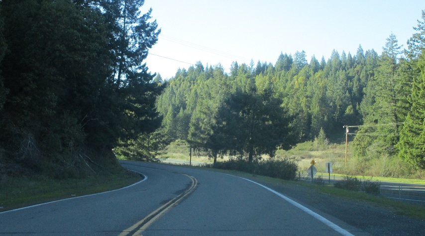 After the 101 junction, we’ll need to turn right to continue to Leggett. 271 connects to a private Drive Thru Tree Park, where you can drive a car through a sequoia tree.