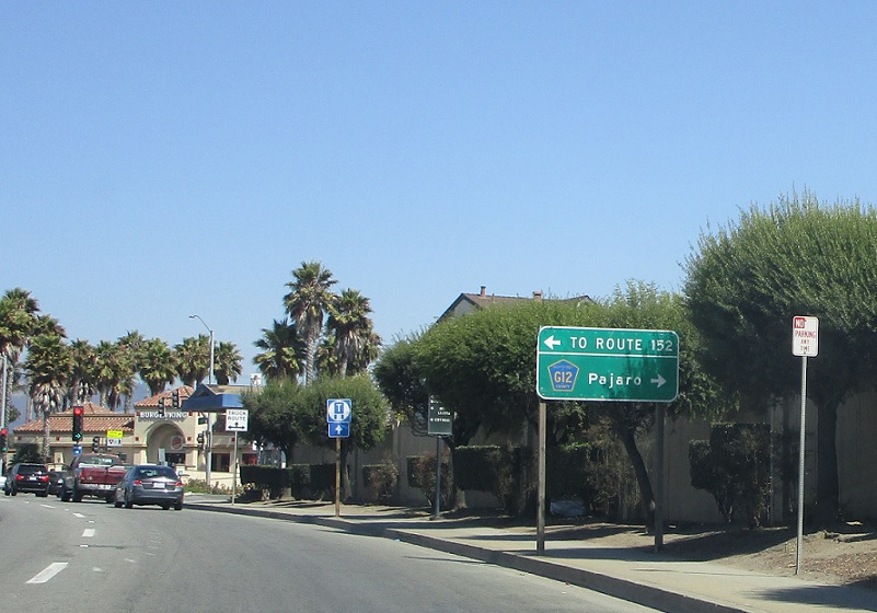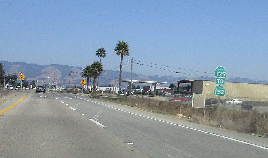 As we enter Watsonville, turn right for CR G12 and left to connect up to SR 152. Stay straight to stay on 129. This is an old alignment of SR 1 and SR 129’s postmiles reset here.