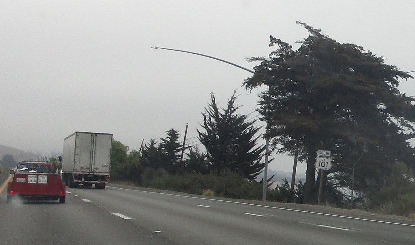 As SR 1 joins US 101, the freeway picks up the “scenic route” designation.