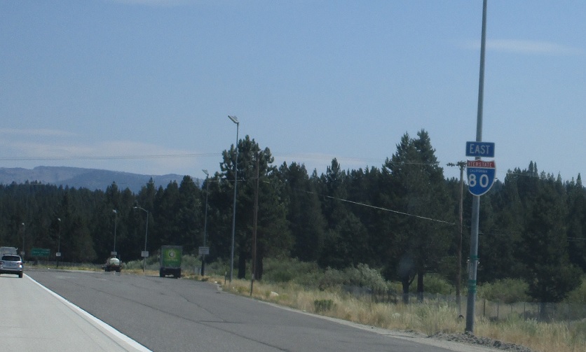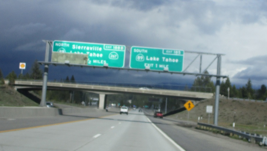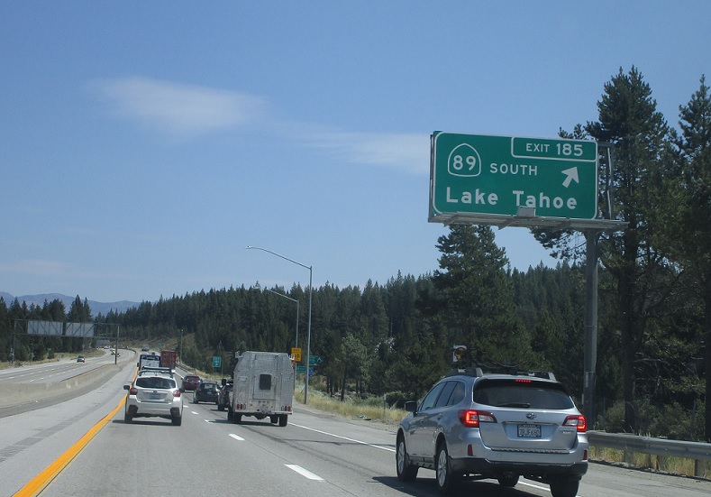 Exit for SR 89 south towards Lake Tahoe. 89 north joins I-80 for a couple exits.