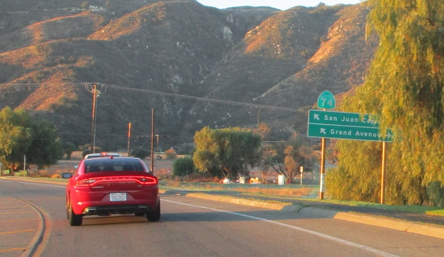 After following the west bank of Lake Elsinore for a couple miles, SR 74 bears left again towards San Juan Capistrano.