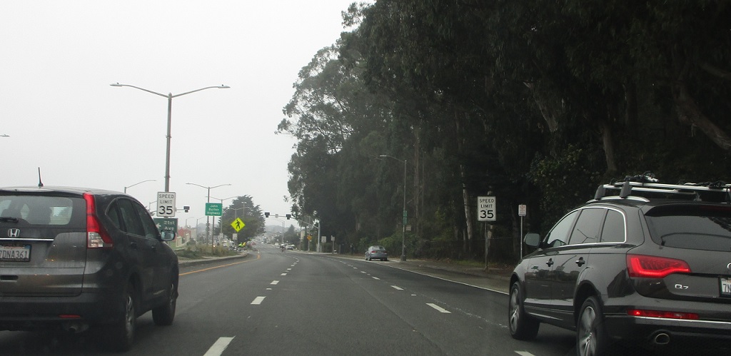 Reassurance shield after the turnoff to the coast road back up through San Francisco.