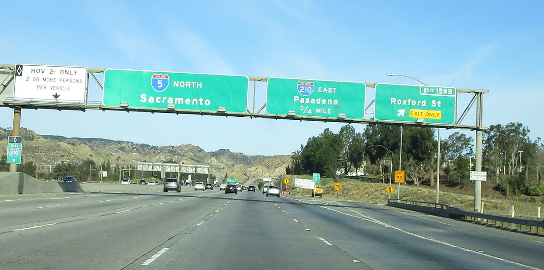 3/4 of a mile to I-210 east. Keep left for I-5 north. HOV traffic should get over because there’s not a dedicated 210 exit.