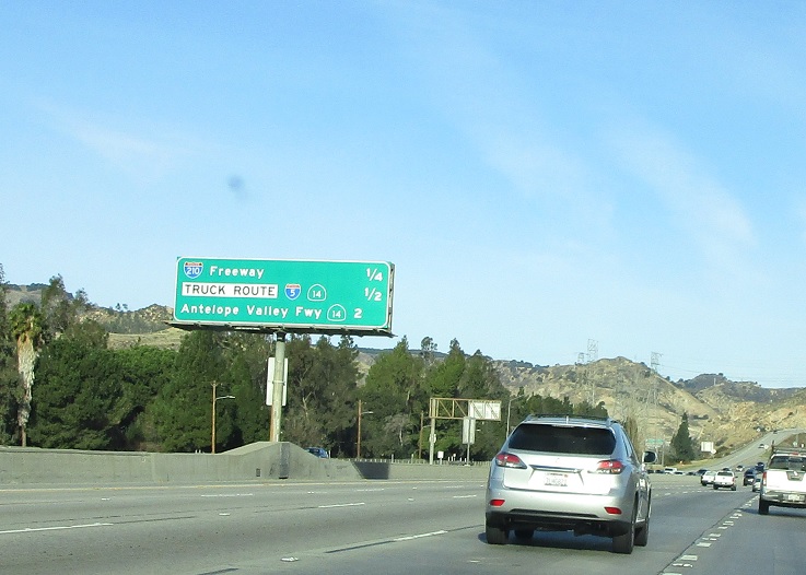 1/4 mile to I-210, 1/2 mile to another I-5 truck detour, two miles to SR 14.