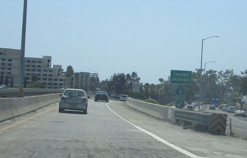 Exit for SR 1 north, which briefly takes over the Santa Monica Freeway designation from I-10. This is I-10’s western terminus.