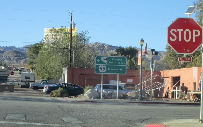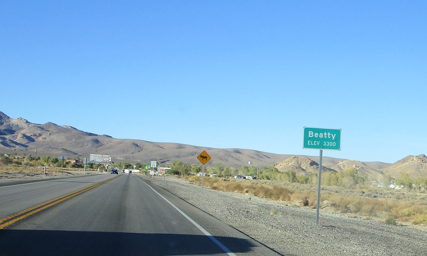 As we enter downtown Beatty, we’ll approach SR 374, which heads down to Death Valley National Park.