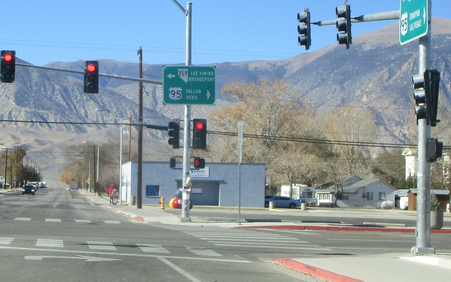 Follow 95 north to Fallon and Reno. SR 359 is a connector over to the US 395 corridor in California and heads towards Lee Vining and Bridgeport, which are both in the Golden State.
