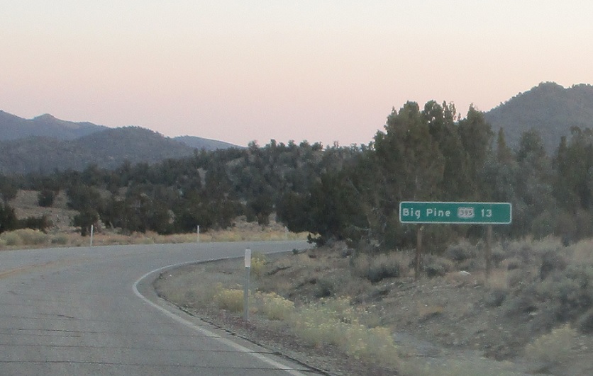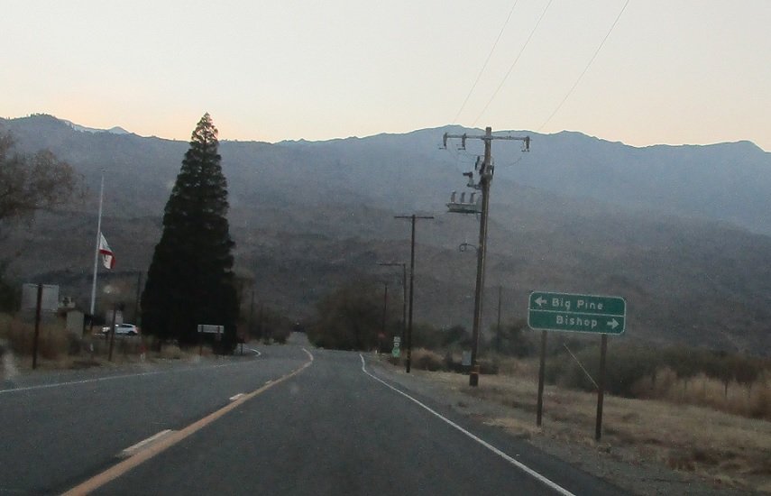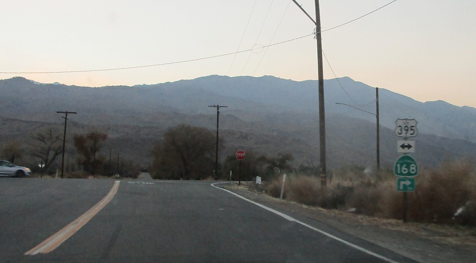 A few miles later, we’ll approach US 395. Follow 395 south into Big Pine. 395 north and 168 west run concurrent to Bishop.
