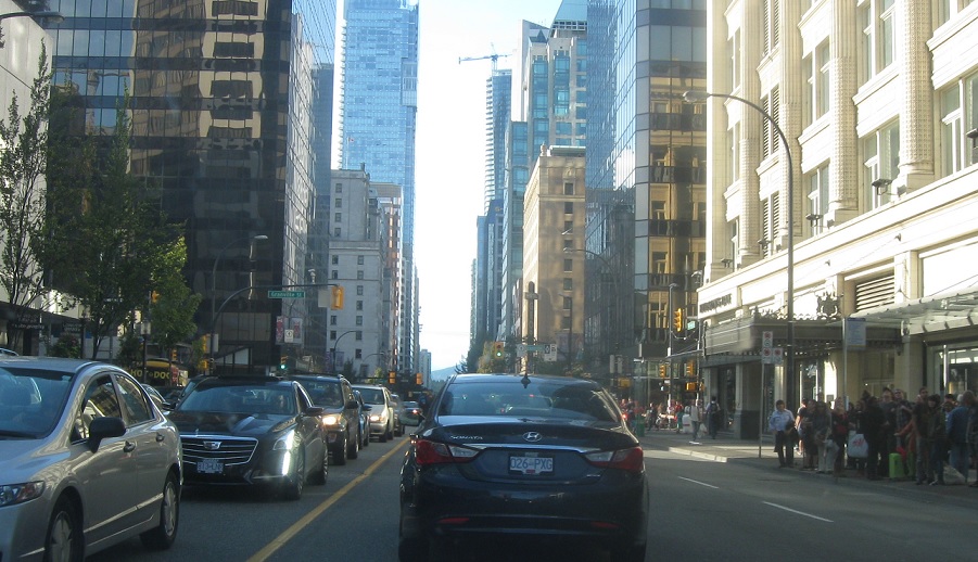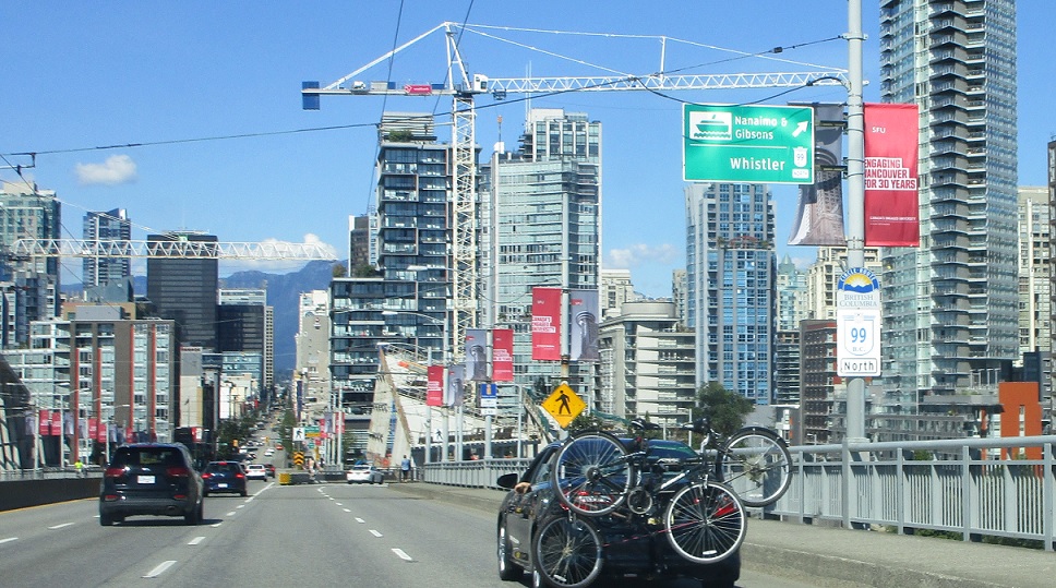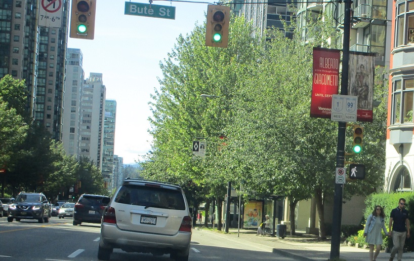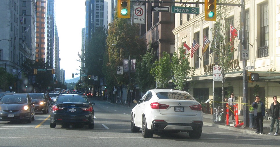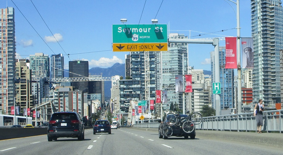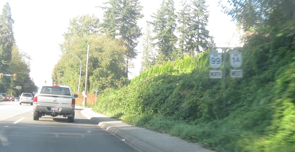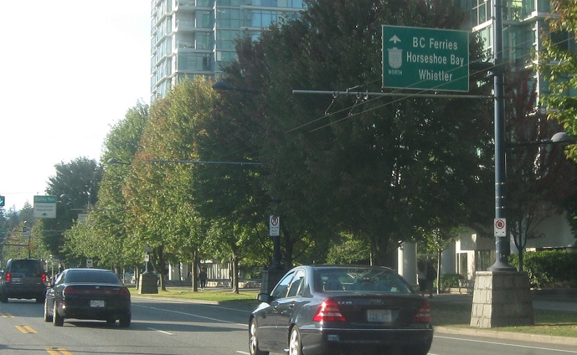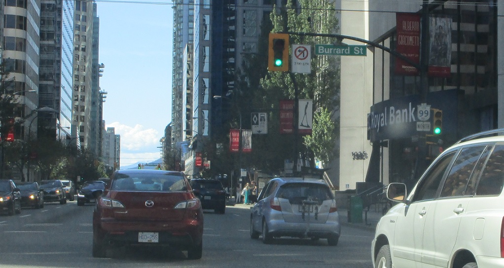 A few blocks into downtown Vancouver, 99 turns left. Turn left to stay on 99 north. Turn right to follow old BC 1A to BC 1.
