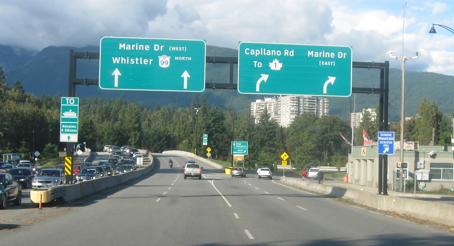 As we head off the Lions Gate, keep left to stay on 99 north, which merges onto Marine Dr.