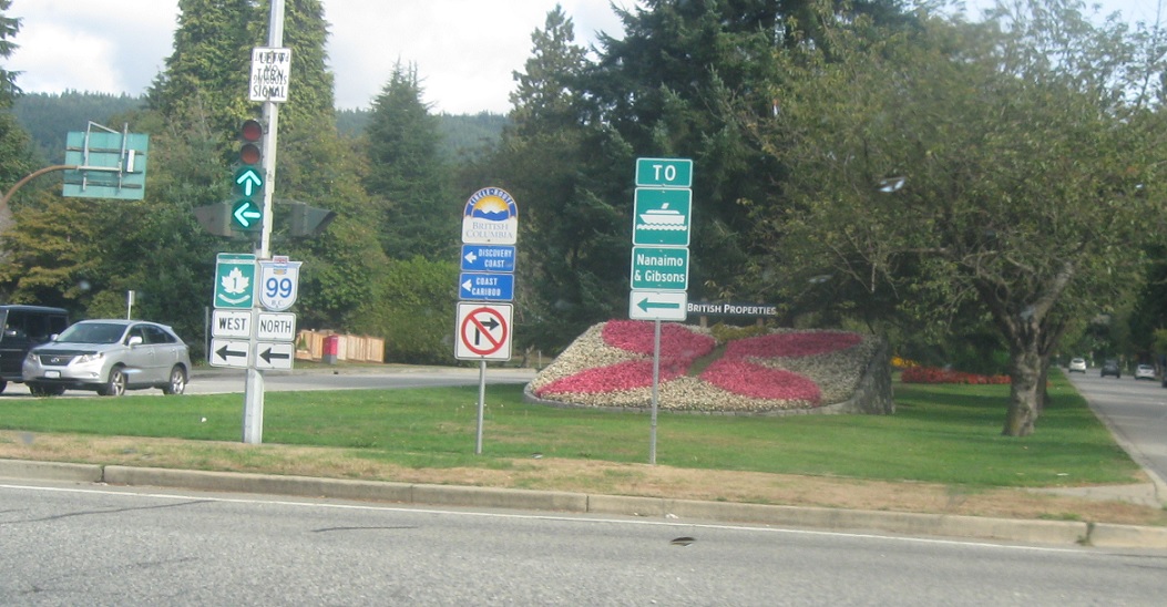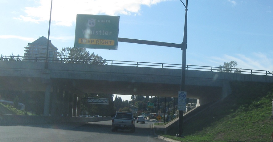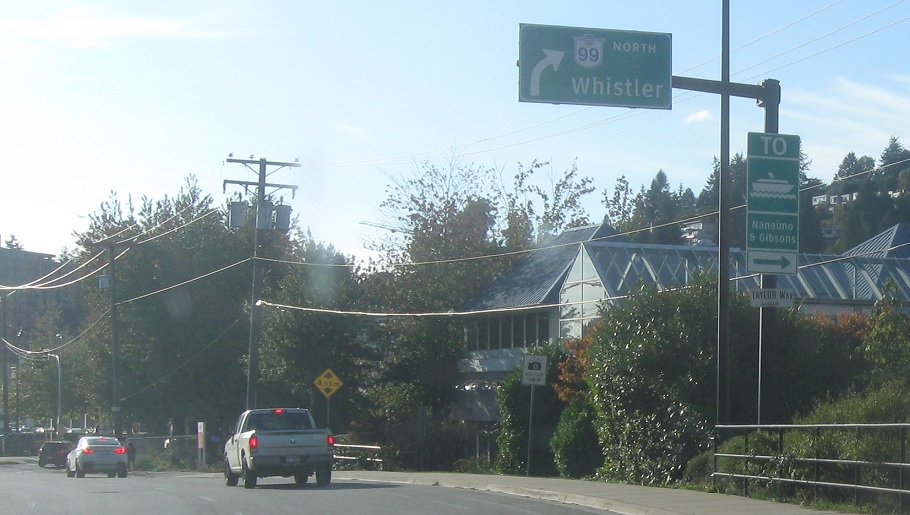 99 north heads towards the Horseshoe Bay Ferry Terminal and Whistler.