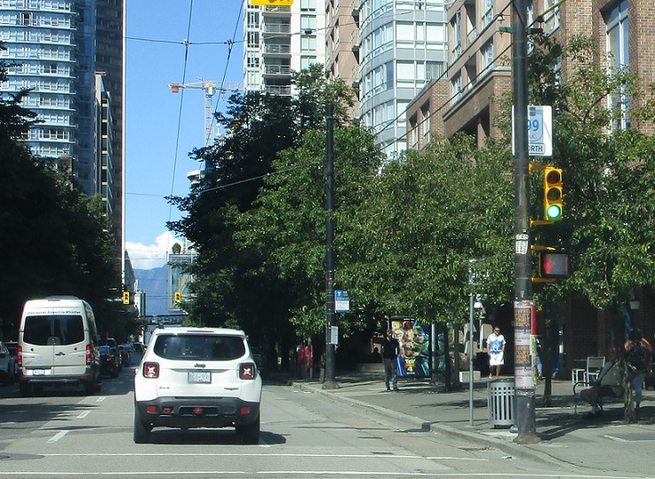 A few blocks later, a reversible lane begins as we start to head into Stanley Park.