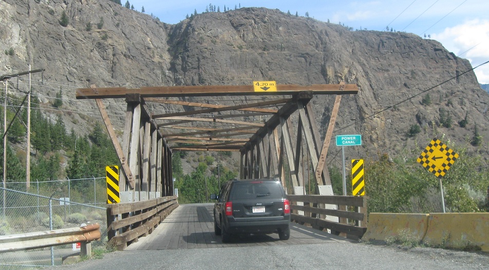 As we near Lillooet, BC 99 crosses over this one lane wooden bridge.