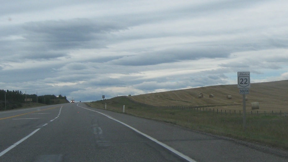 Mileage sign after the Trans-Canada junction. We’re 59 km from Highway 2 via Alta. 22X.