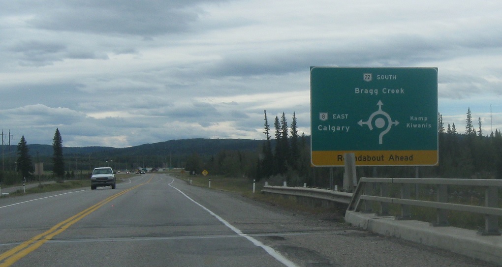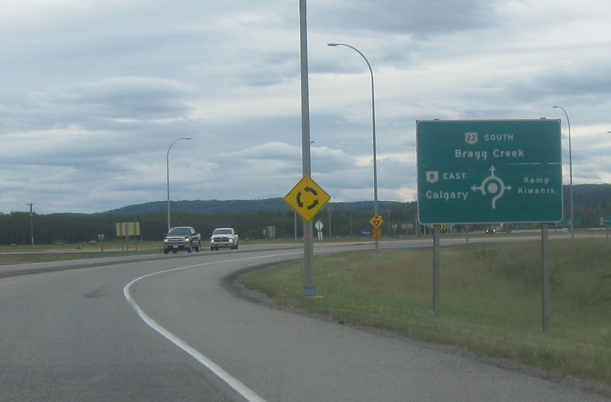 We’ll approach Alberta 8 just ahead within a roundabout.