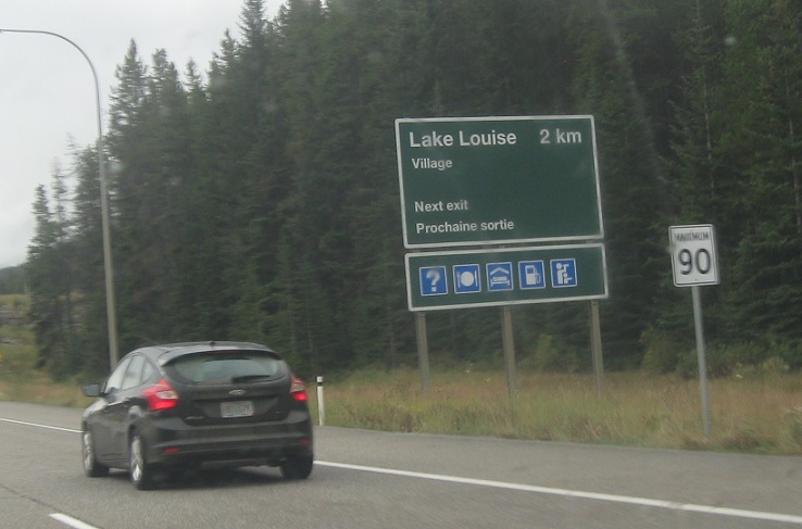 In two kilometers, we’ll approach Alberta 1A, which serves Lake Louise.