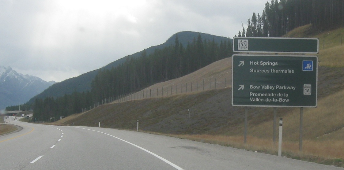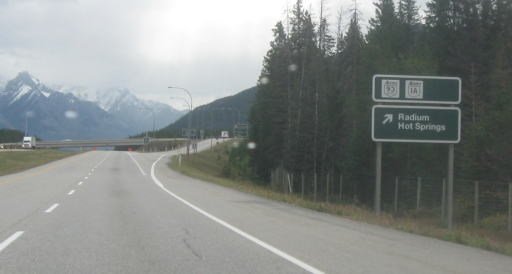 Stay on mainline Alberta 1 for Banff and Radium Hot Springs.