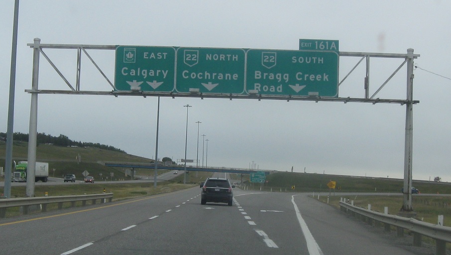 Exit for AB 22 south. Exit ahead for 22 north. Stay on AB 1 for Calgary.