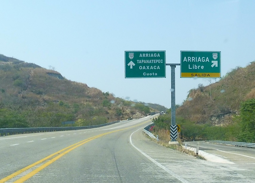 Exit ahead for the free 190 branch to Arriaga.