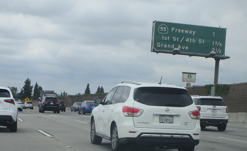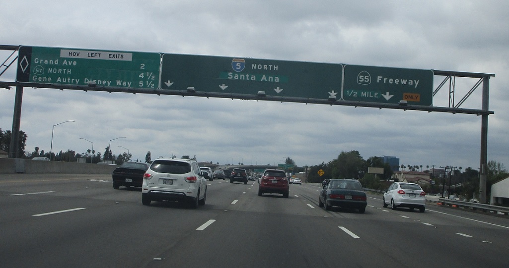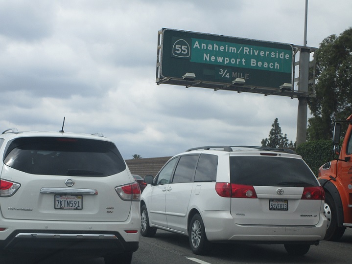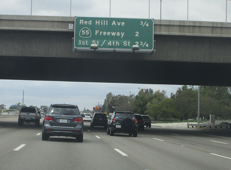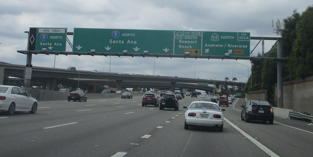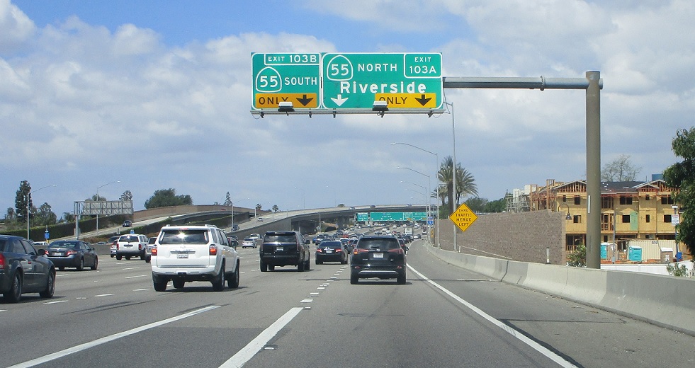 In a half mile we’ll approach SR 55. HOV traffic is 4.5 miles from SR 57.