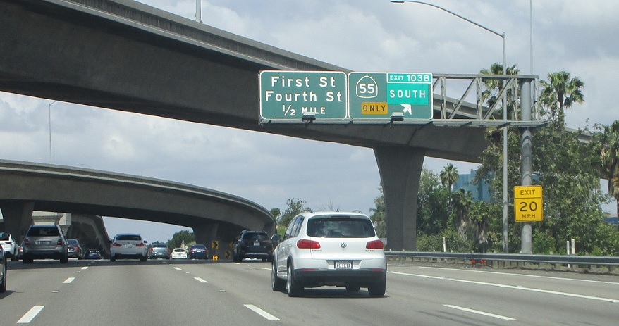 Exit first for 55 north towards Anaheim.