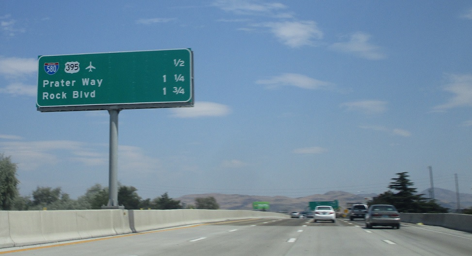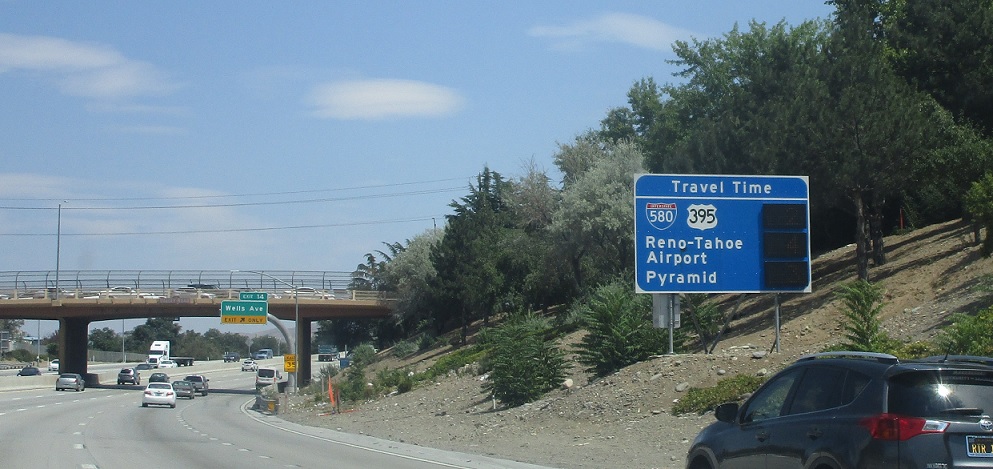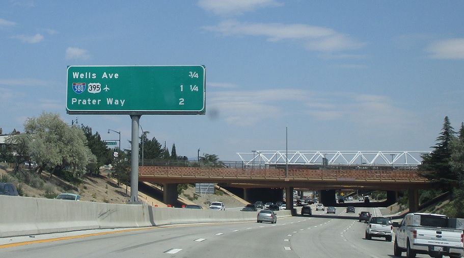 Exit for I-580 and US 395. This is the northern terminus of I-580.