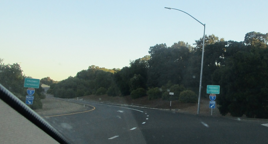 Just after the 36 split we’ll cross over the freeway and merge onto I-5 north. There is no access to I-5 south from 5 Business north. The business loop ends.