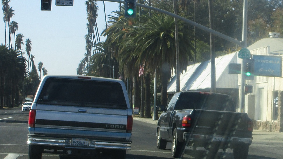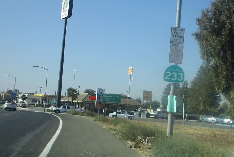 Reassurance shield as we pass through downtown Chowchilla, which is impressively lined with palm trees.