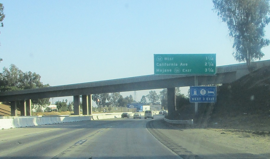 1.25 miles to SR 58 west. 58 east will join 99 south and exit in 3.25 miles.