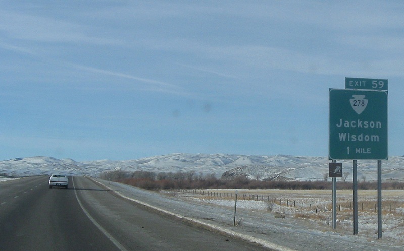 Exit for S-278, which heads up to Wisdom. S-222 also exits here and follows old US 91 back up to Dillon.